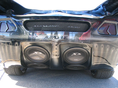 The car started life as an $83,000 BMW 645Ci and was transformed into one of the most amazing demo vehicles ever! This car has made it's rounds to many different shows, so those that have had the pleasure of seeing it in person can attest to its sheer brilliance.It's hard to choose just which aspect of this car is more amazing.... The motorized entry and exit? The LCD screen taillights? The fact that it has no steering wheel, just a steering knob? The 26x13 rear wheels? I could keep going. One thing the Alpine guys did people is that this car has one of the most expensive remote start systems ever.
